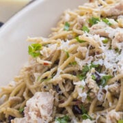 This fast and easy pasta recipe is quick, spicy and delicious. Made with common pantry ingredients, the whole meal comes together in less than 15 minutes!