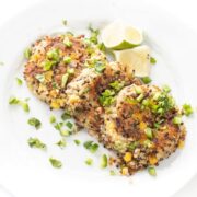 These protein-packed hummus quinoa patties are naturally vegan and made with creamy hummus, corn, and jalapenos.