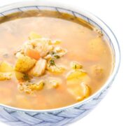 This fragrant broth-based Caribbean fish soup, also known as fish tea, is made with hearty veggies, potatoes and various types of fish and seafood.