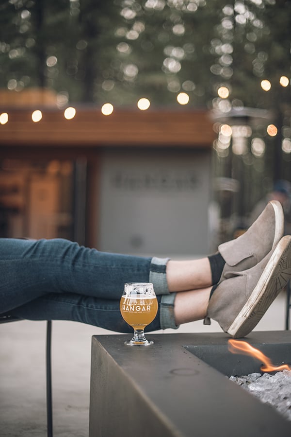 After dinner, cozy up by the fire at The Hanger, South Lake Tahoe’s newest taproom.