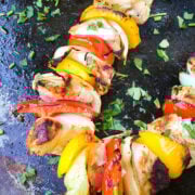 Sheet pan Lebanese shish tawook chicken is marinated in lemon and garlic then baked in the oven until golden brown. This recipe is ideal for salads, pitas, rice and more.