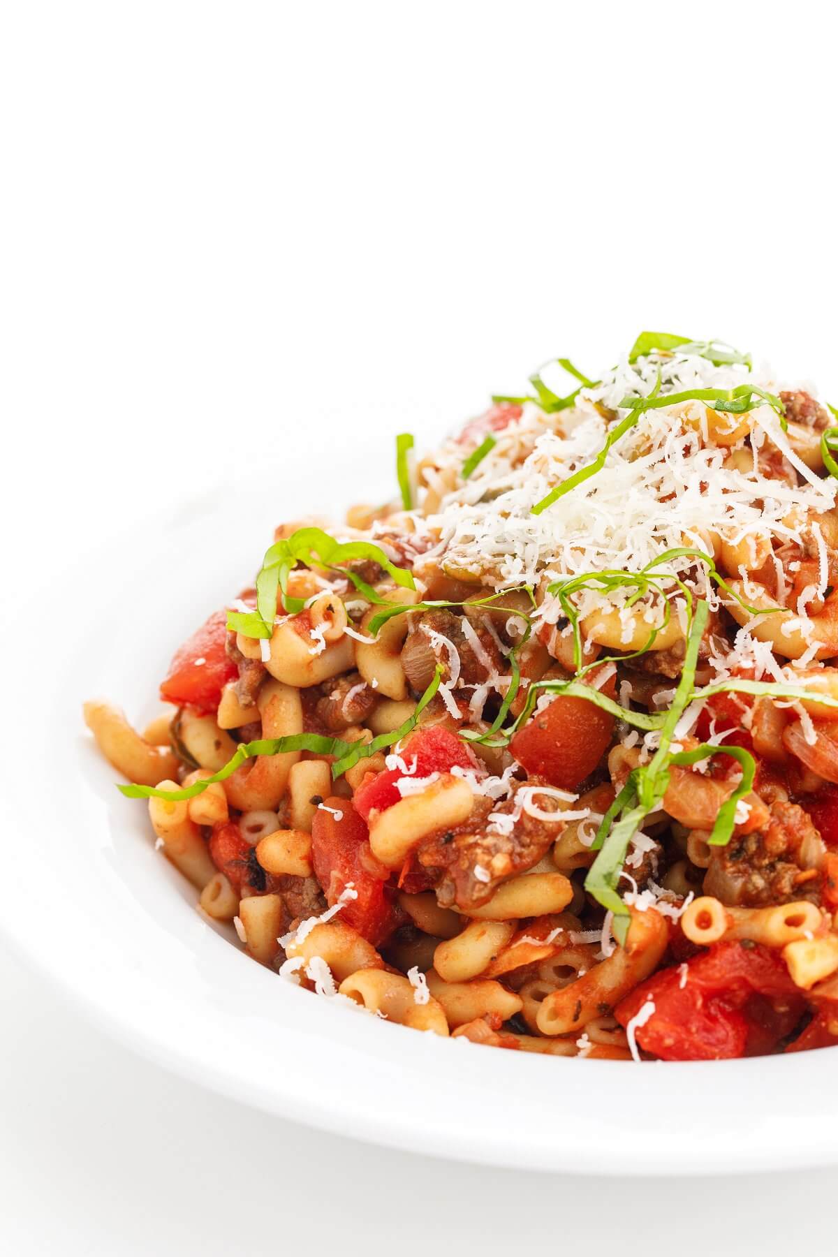 American goulash, is a simple macaroni pasta dish made with a hearty meat sauce. Family-friendly and crowd-pleasing, this dish is affordable and delicious!