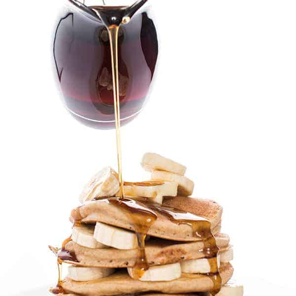 Second, I don’t add in any white sugar to sweeten the pancakes. Instead, I stir in a mashed, ripe banana that sweetens the stack naturally. Of course, you’re still more than welcome to drizzle with pure maple syrup but they are tasty on their own.