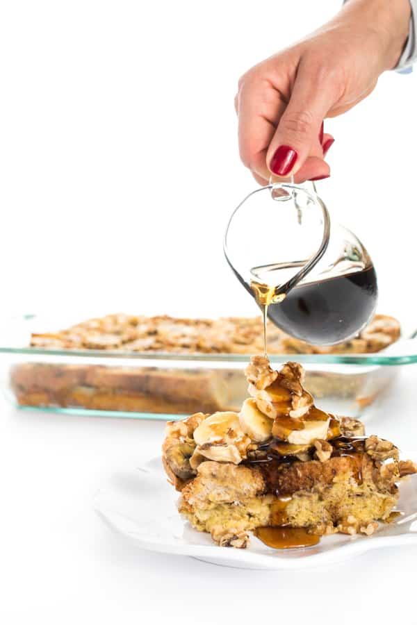 This warm and satisfying banana nut French toast bake is ideal for prepping ahead and baking in the morning. The ultimate crowd-pleasing breakfast recipe!