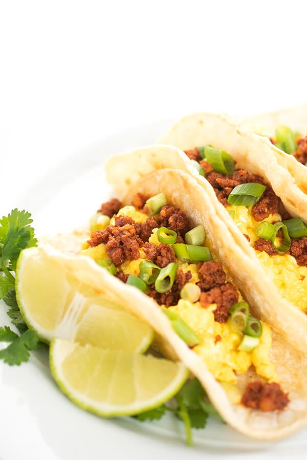 It can be easy to get stuck in a breakfast rut (believe me, I get stuck in them frequently!) but these savory tacos with eggs and chorizo will break you free.