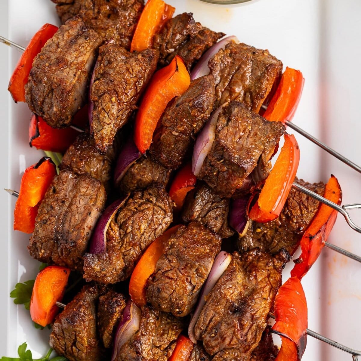 To serve, either drizzle the sauce over the top of the skewers or on the side as a dip. Enjoy your Broiled Steak Skewers with Tahini Sauce!