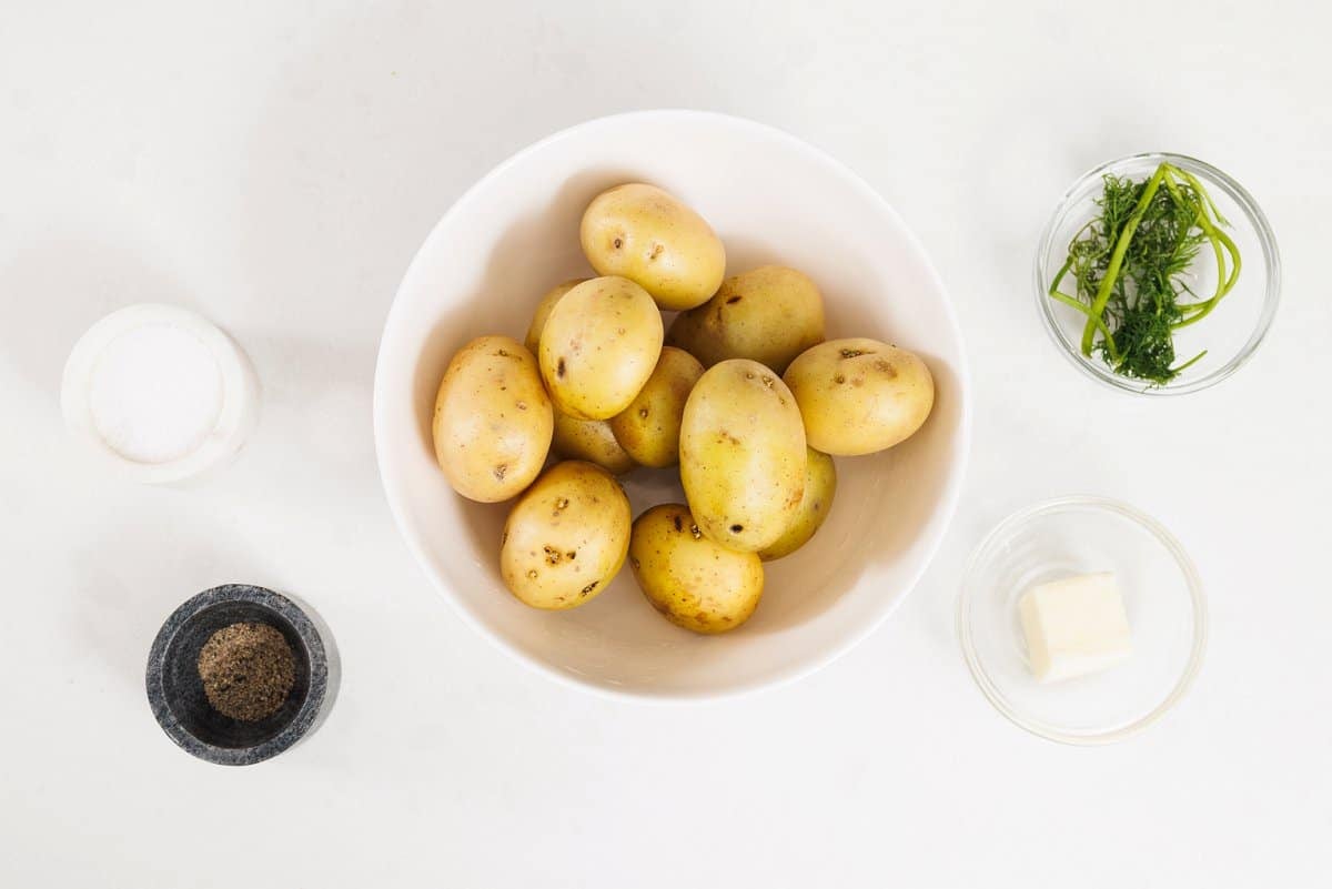 • Butter: Unsalted butter coats the potatoes and adds to the creamy, buttery taste of the dish while helping the dill and salt to stick.