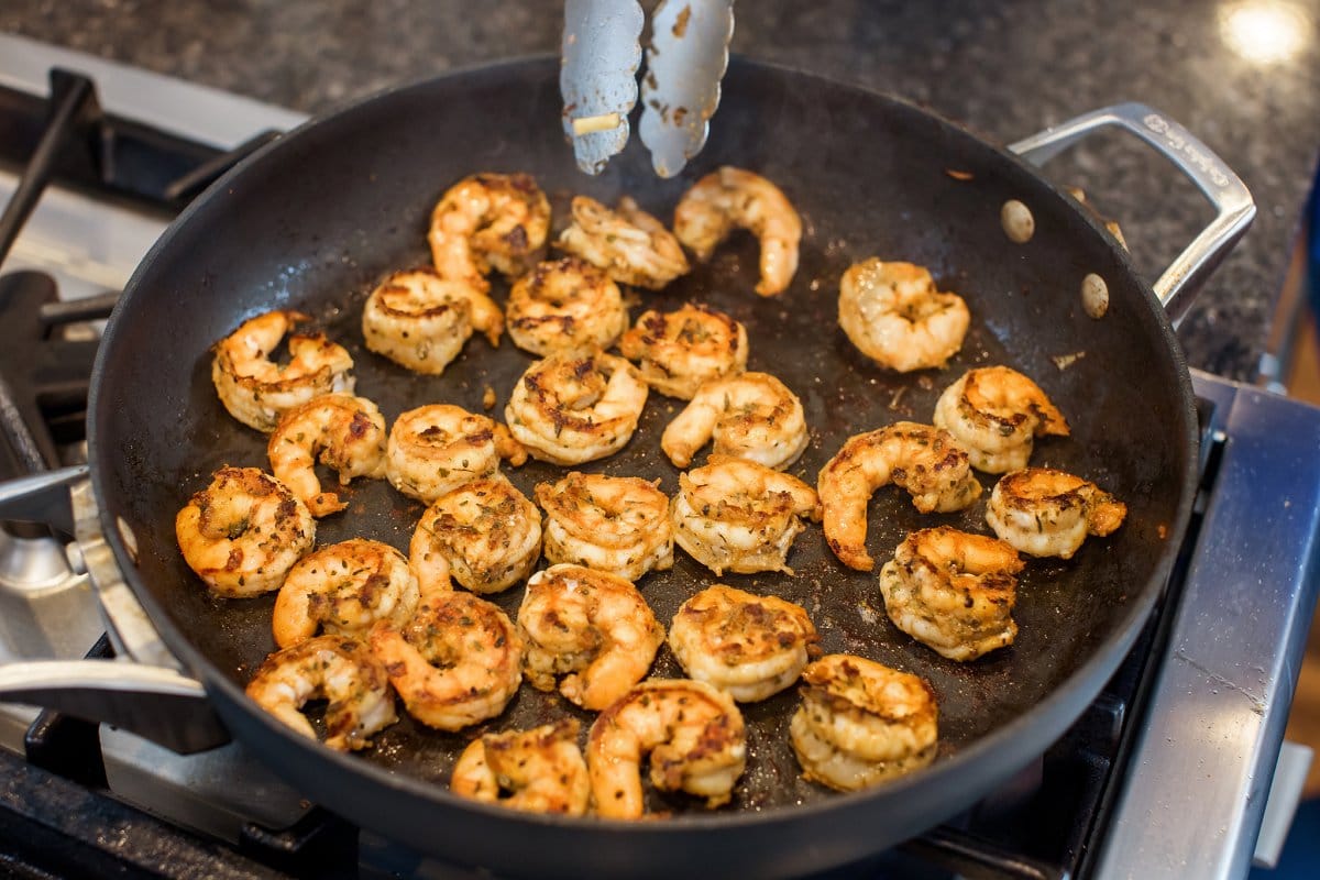 To begin cooking, simply prep the vegetables, boil the pasta and begin seasoning the shrimp. If using frozen shrimp, be sure to fully defrost before use. Then, pat them dry and season liberally with Cajun spices.
