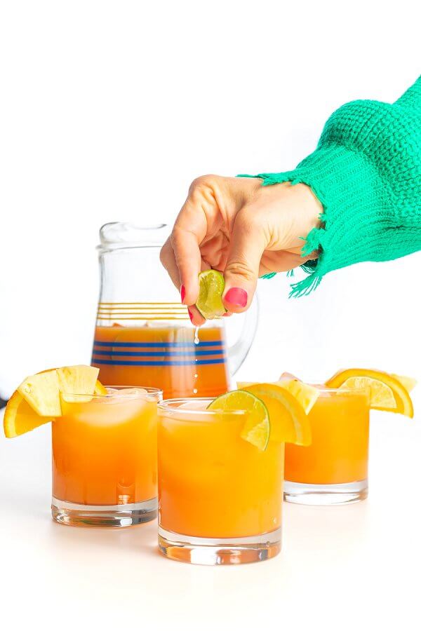 Since pineapple and orange juice are on the sweeter side, I like to add the juice of at least one lime to balance with a bit of acidity. Lemon juice works well too if you don’t have limes on hand.