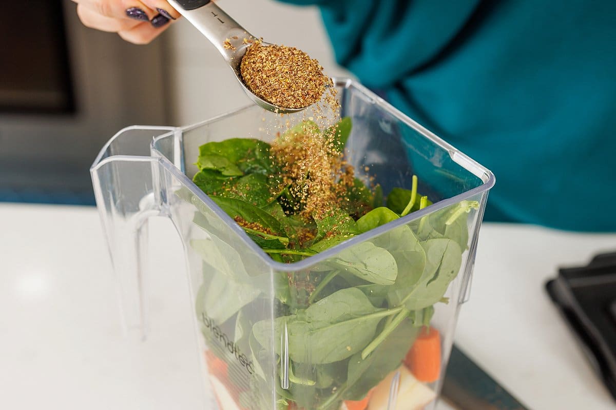 • Spinach: While raw spinach can be slightly bitter, the greens are full of iron and other nutrients, and the taste gets overpowered by the other ingredients.