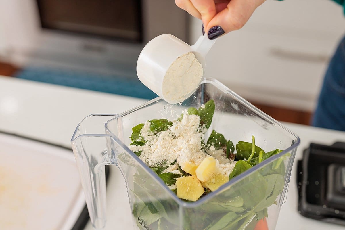 • Protein powder: Packing in the protein will help to keep you feeling full until lunch. Use a plant based protein powder to keep this smoothie vegan and vegetarian.