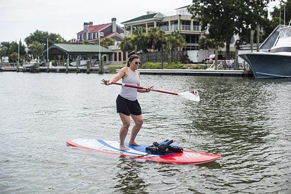 Ideal for people of all experience levels, the calm waters of Shem Creek made it easy to keep steady on our boards.