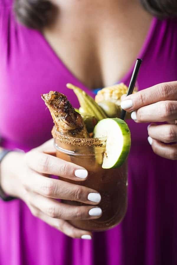 Do yourself a favor and order the bloody mary, complete with a BBQ chicken wing garnish.