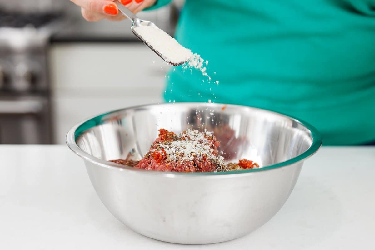 - Parmesan cheese: Keeping this dish gluten free, the parmesan cheese both adds flavor and acts as a binder to help keep the meatloaf together.