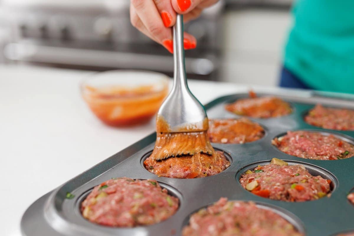 Brush the sauce over the top of each meatloaf muffin.