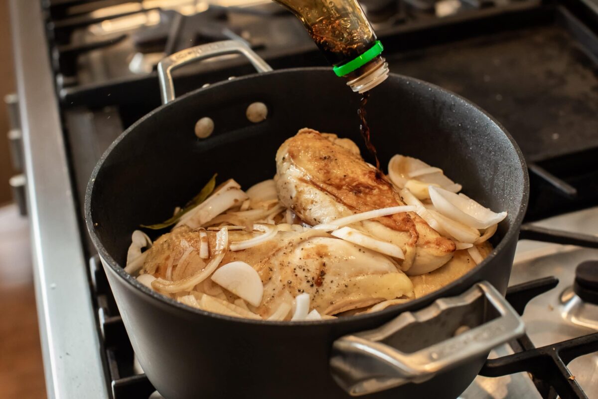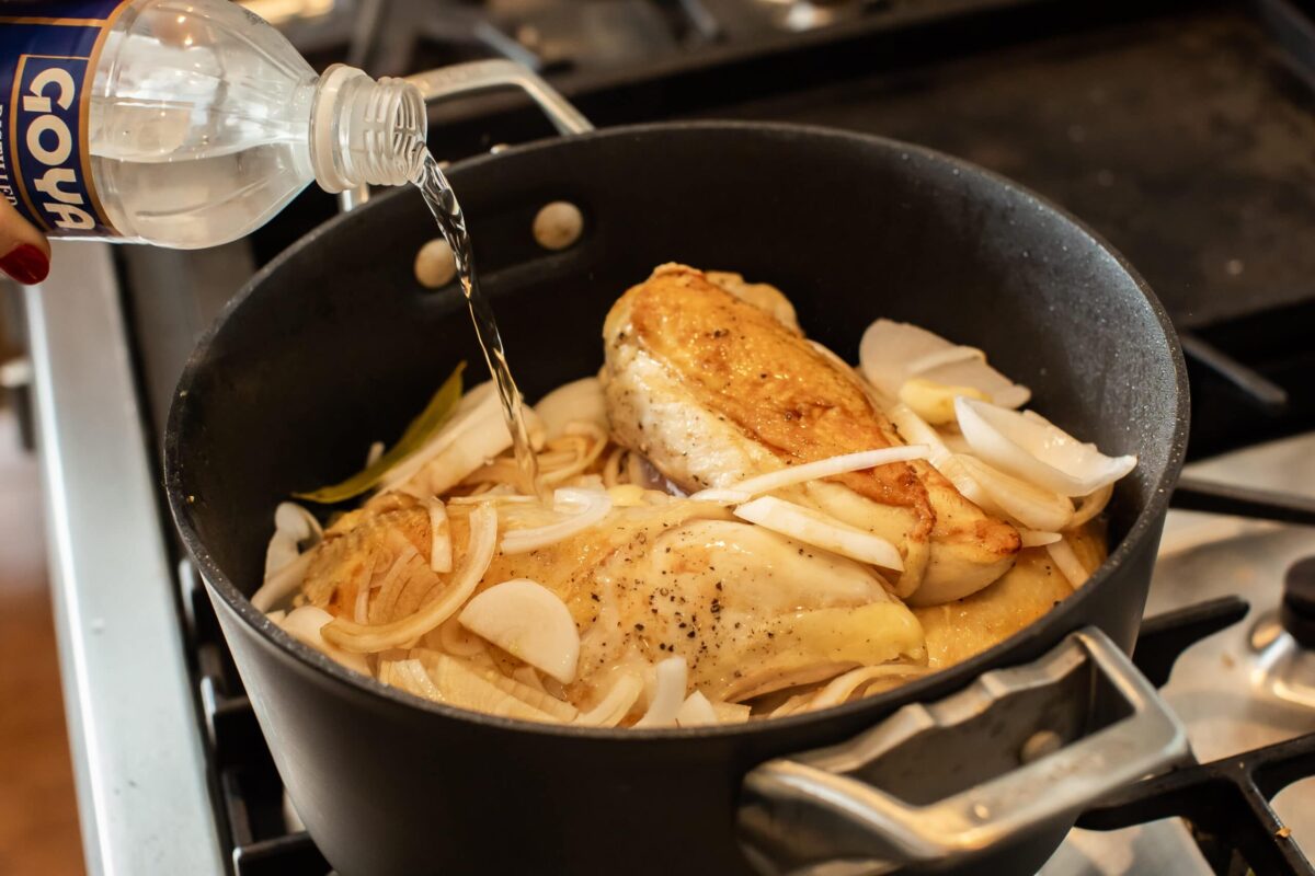 Chicken Adobe with Onions in pot