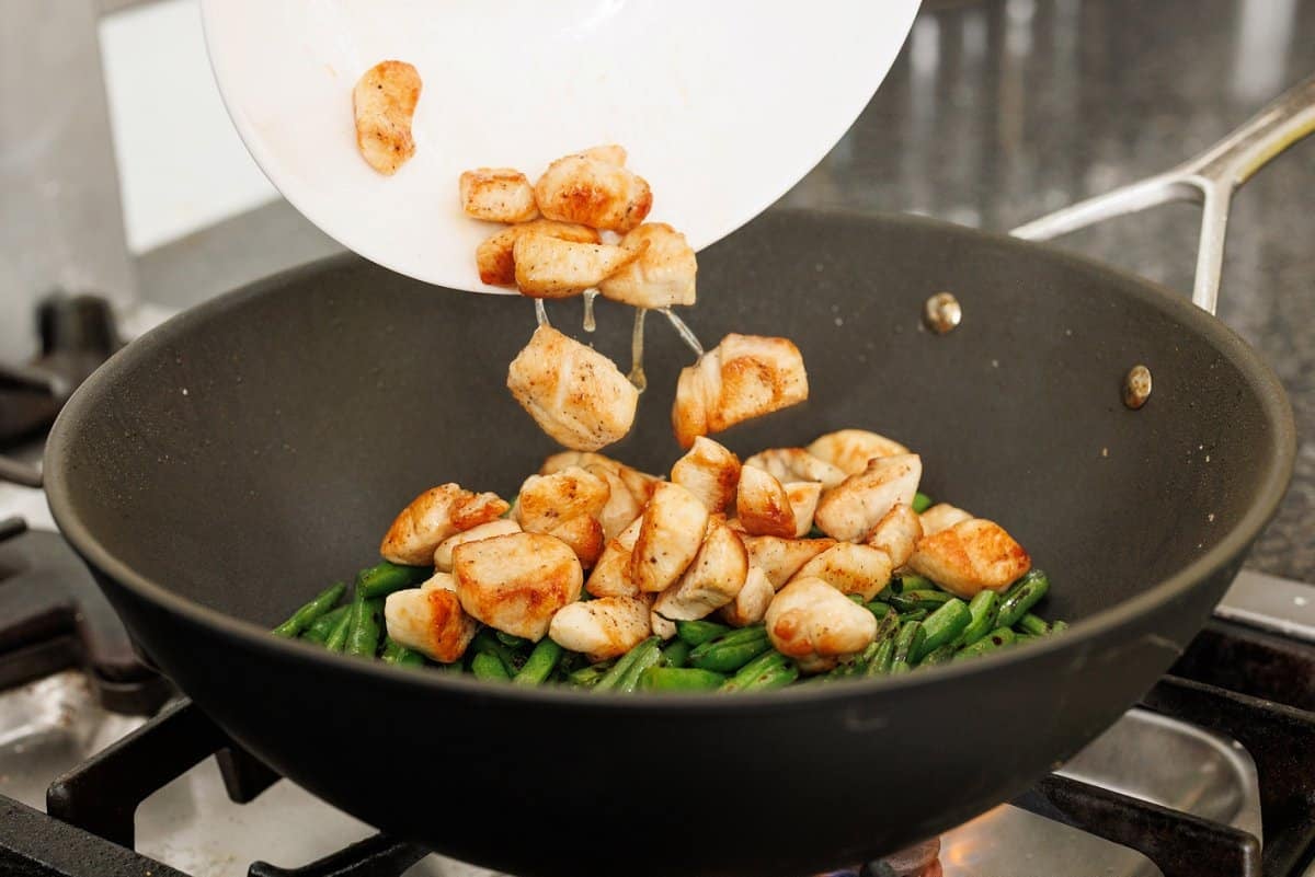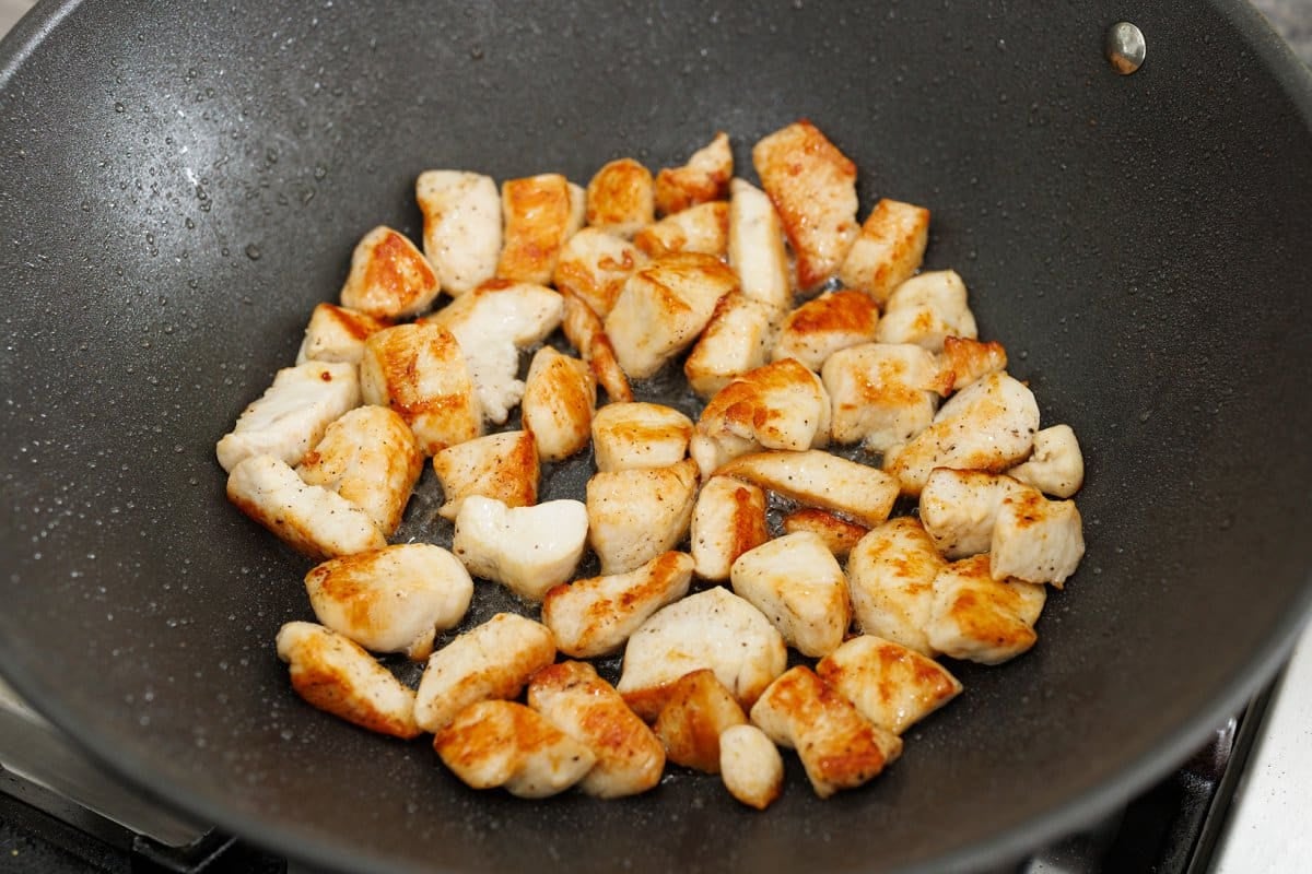 Once your wok is hot, add the chicken and cook until golden-brown. Remove and set aside.