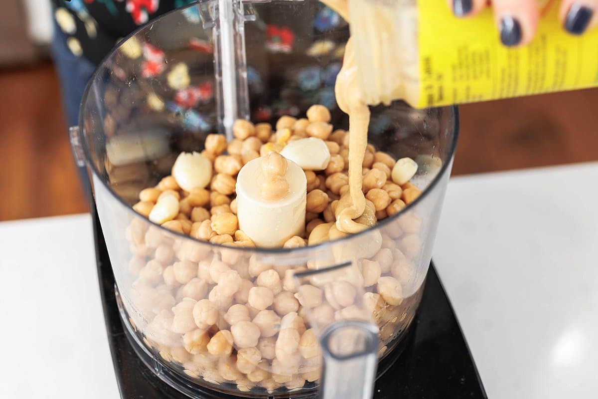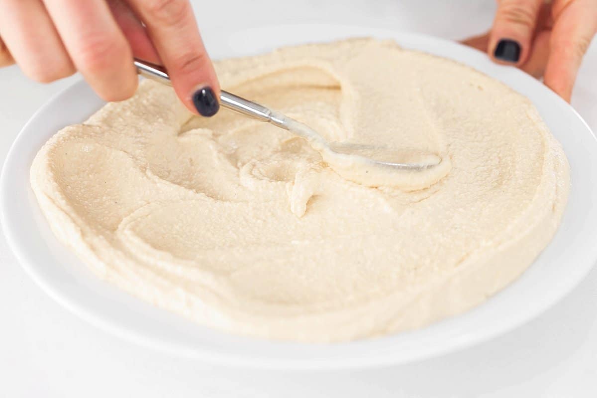 - Place all ingredients in a food processor and puree until smooth. Check for seasoning and add more garlic, lemon or salt as desired. To serve, spread on to platter and top with toasted pine nuts and fresh parsley. It can be stored in an air-tight container in the refrigerator for up to 7 days.