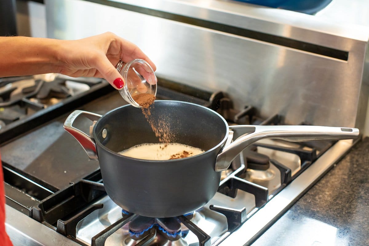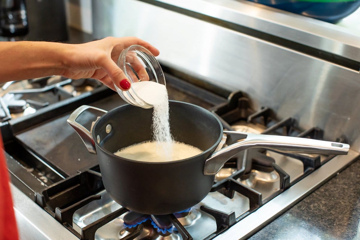 1. Add milk to a large saucepot and whisk in cinnamon, salt and sugar until thoroughly combined. Bring milk to a gentle boil over medium heat, whisking occasionally. Keep a close eye being careful not to scorch the milk.