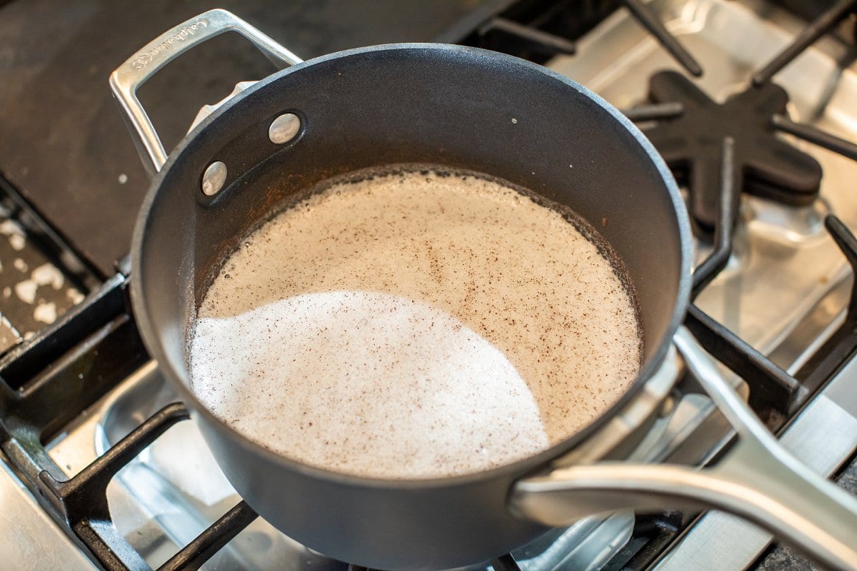 However, I altered my mom’s recipe using ingredients I had on hand. For instance, the Middle Eastern version that we grew up eating typically has a splash of orange blossom water. Unfortunately, I didn’t have any. So, I decided to create a more traditional version instead. The end result is a thick and creamy dessert full of flavor that fills the kitchen with luscious aromas.
