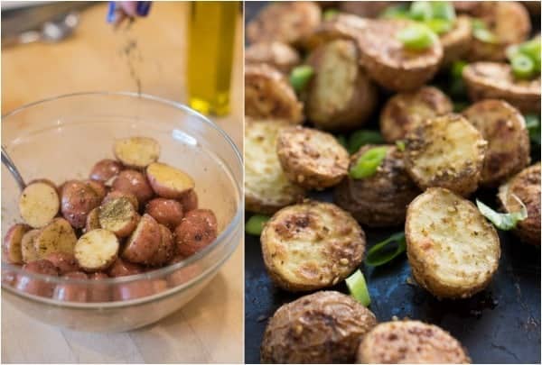 These creamy blushing belle potatoes from The Little Potato Company are tossed in extra virgin olive oil then sprinkled with za’atar, salt and pepper. If you haven’t tried za’atar yet, it’s my go-to Lebanese spice mixture filled with sumac, sesame seeds, oregano and other herbs.