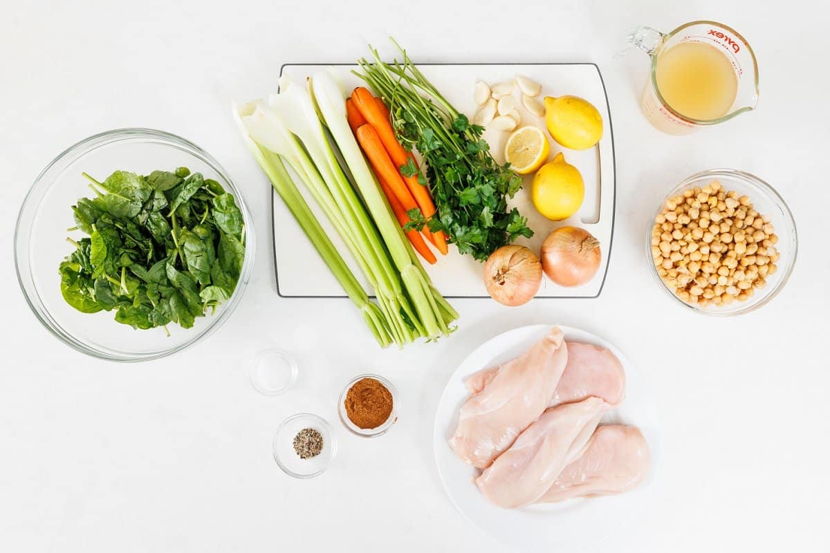 Have you ever tasted a dish that feels like a hug? My easy chicken soup with greens is literally a warm bowl of comfort. Whether you’re coming down with a cold or looking to cheer up a friend, this soup always seems to do the trick. Loaded with nutrients and plenty of lean protein, soups such as this or my Lamb Vegetable Soup are one of my favorite meals-in-a-bowl. One of the reasons I make soups regularly is because they are perfect for using up any leftover produce I have sitting in the fridge. This particular chicken soup is a wink and a nudge to my Syrian heritage. Made with cinnamon, lemon, garlic and chickpeas, this chicken soup is naturally gluten-free because there are no noodles!