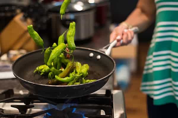 Fancy enough to serve company but easy enough to make for a busy weeknight dinner, be sure to grab a bag of shishitos the next time you see them at your grocery store of farm stand.