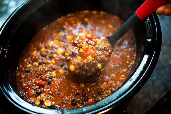 Ideal for entertaining and feeding a crowd, this slow cooker beef chili is perfect for prepping ahead. In fact, it tastes even better the next day or two.