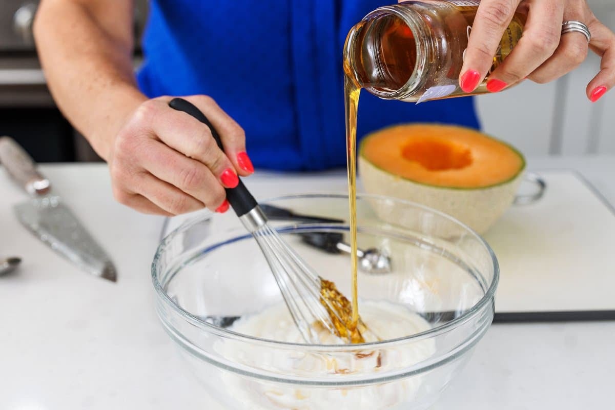 Whisk together until honey is fully incorporated in the yogurt.