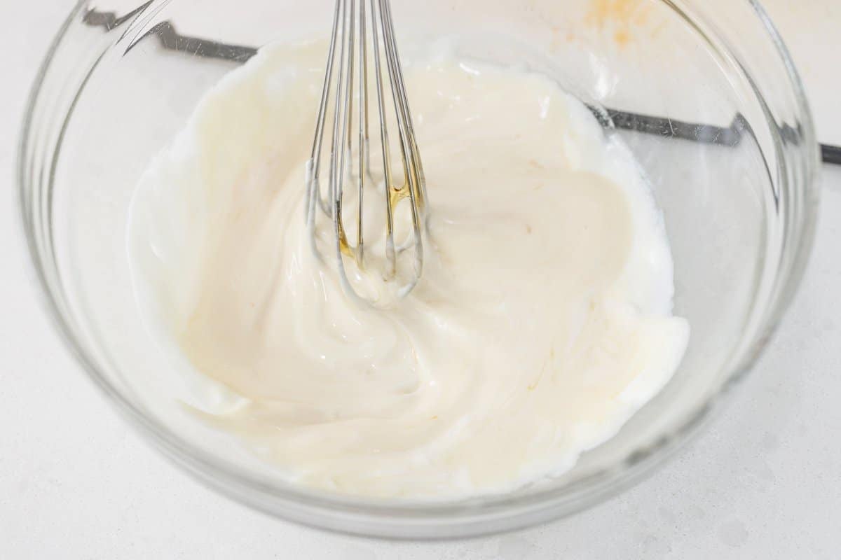 Next, in a large bowl, add in your plain yogurt.