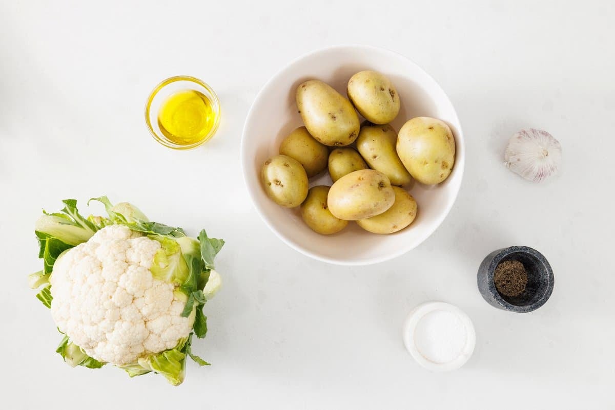 This simple 5-ingredient side dish of roasted potatoes and cauliflower is packed with nutrients and full of roasted garlic flavor.