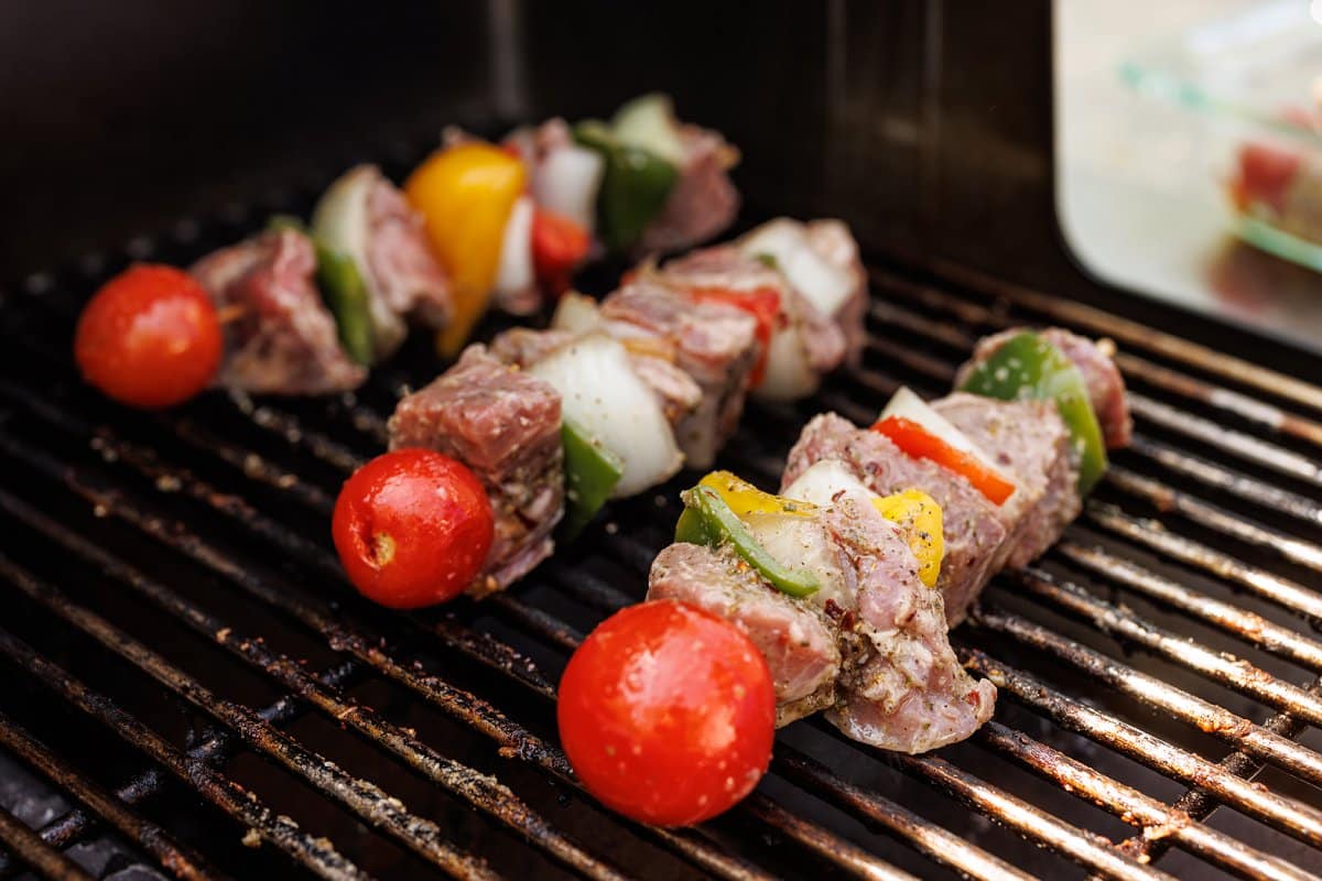 To cook your kabobs, preheat the grill to high heat and add the skewers. Cook for 8 -12 minutes (depending on desired doneness), and rotate one about halfway through. Remove from the grill and let rest for 8 minutes.