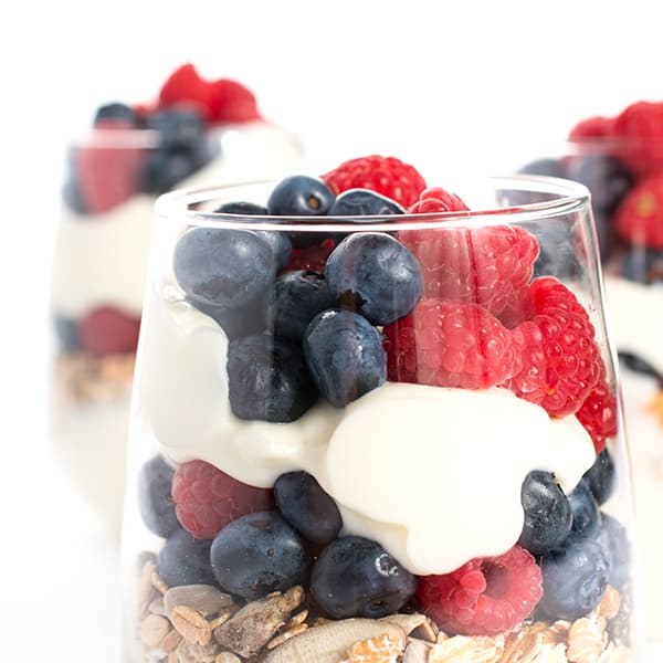 One of my favorite make-ahead breakfast recipes is a quick and easy Greek yogurt parfait. For these parfaits I layer three simple ingredients: Bob’s Red Mill muesli, Greek yogurt and fresh berries.