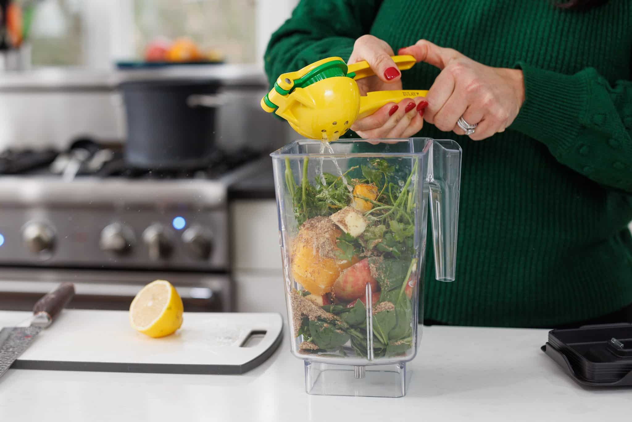 - Lemon juice: Bright, fresh, acidic flavor that pairs with the other fruit in the smoothie.