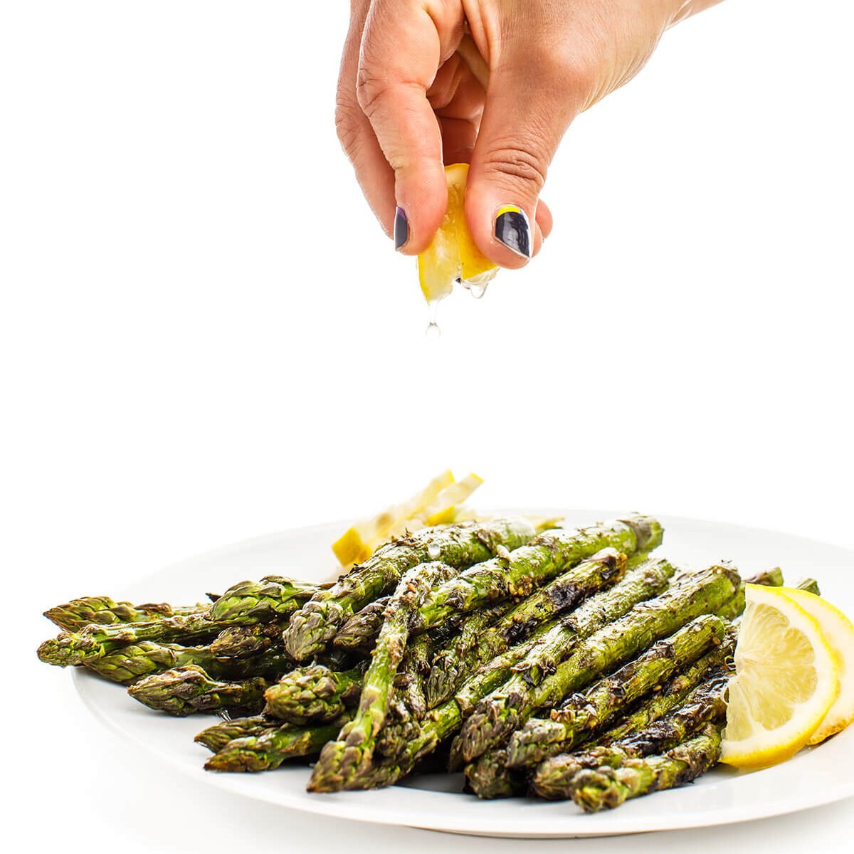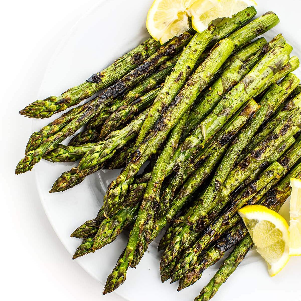 A fast and easy side dish recipe, asparagus is coated with lemon and za’atar and grilled until slightly charred.