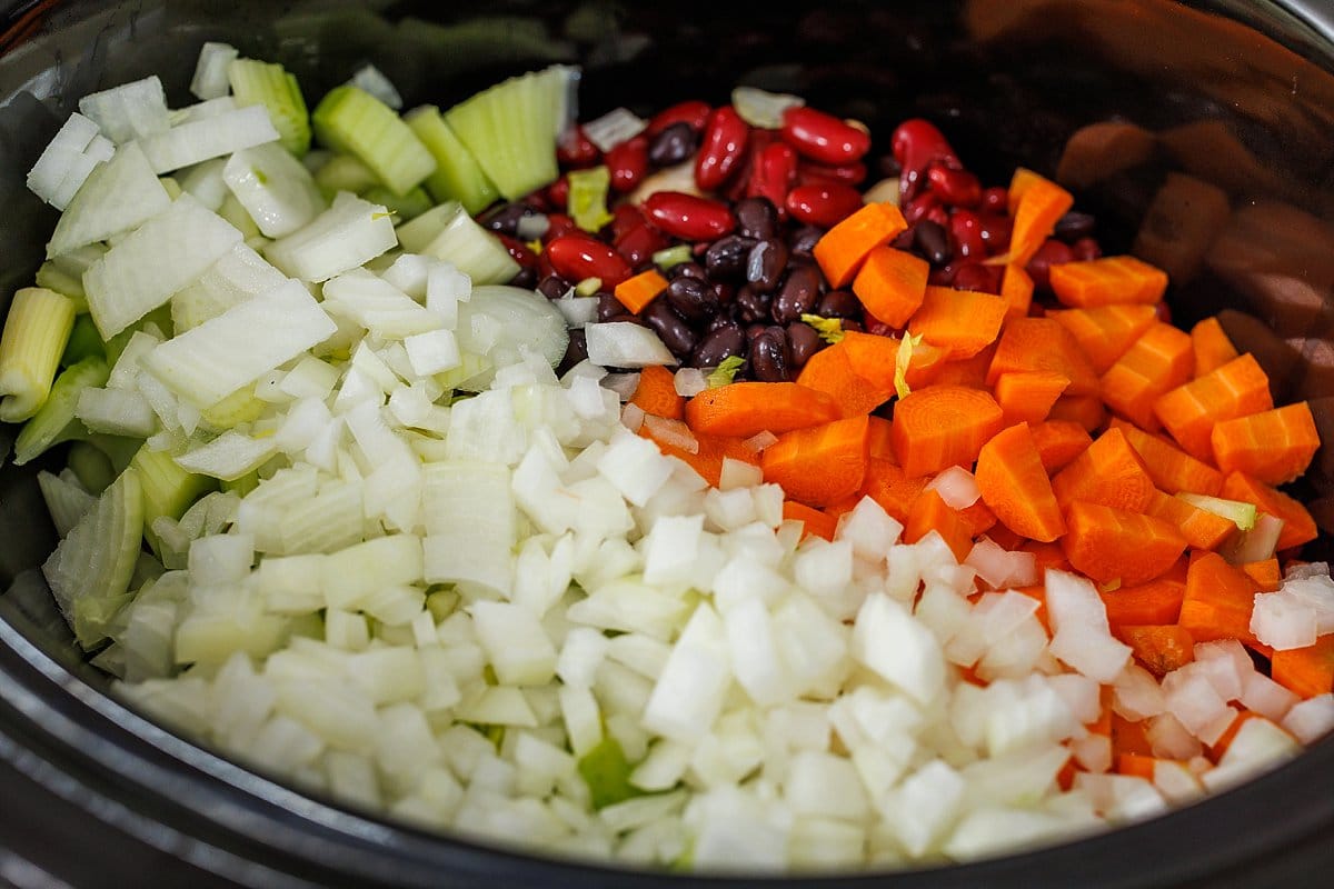 In your slow cooker (I personally use a crock pot), add your soaked/prepared beans.