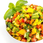 Tomatoes, cucumbers, peppers, and scallions are tossed with parsley, za'atar, lemon and olive oil in this fresh and healthy Lebanese Chopped Salad recipe.