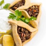 Lebanese meat pies on a plate, one of 20 healthy Lebanese recipes.