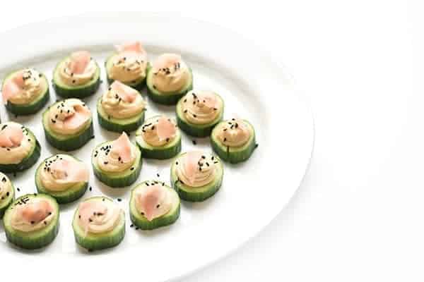Recipe Index » Appetizer Recipes » Hummus Cucumber Bites with Pickled Ginger