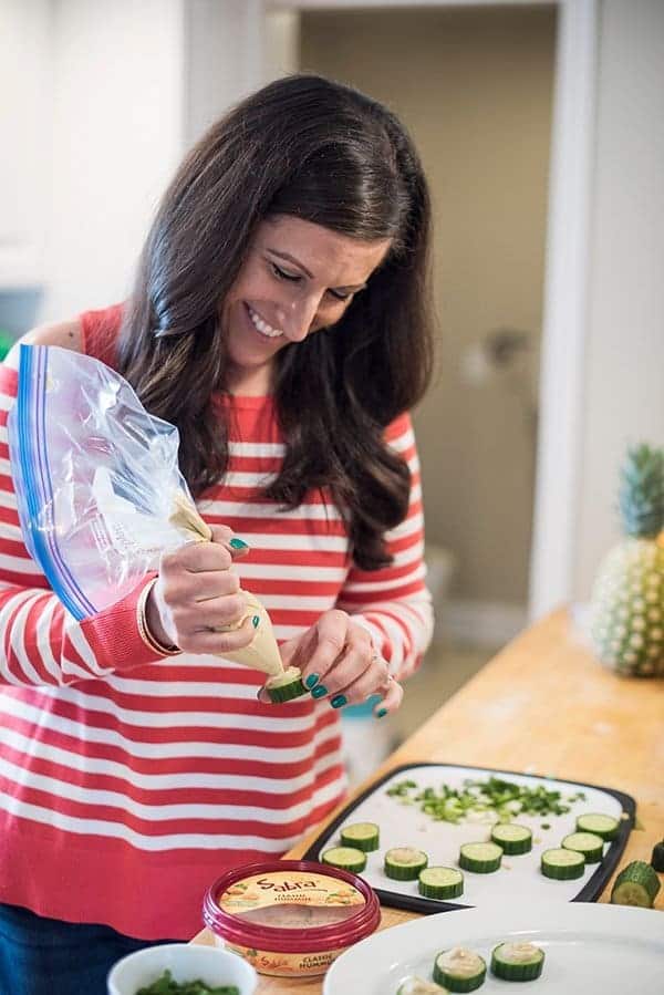 Whether or not you have little ones at home, I think we can all agree: snacks are life. When my friends at Sabra asked me to create a healthy snack recipe, I decided to create a sushi-inspired Hummus Cucumber Bite with Pickled Ginger.