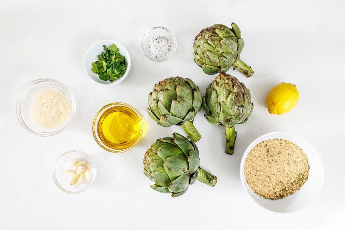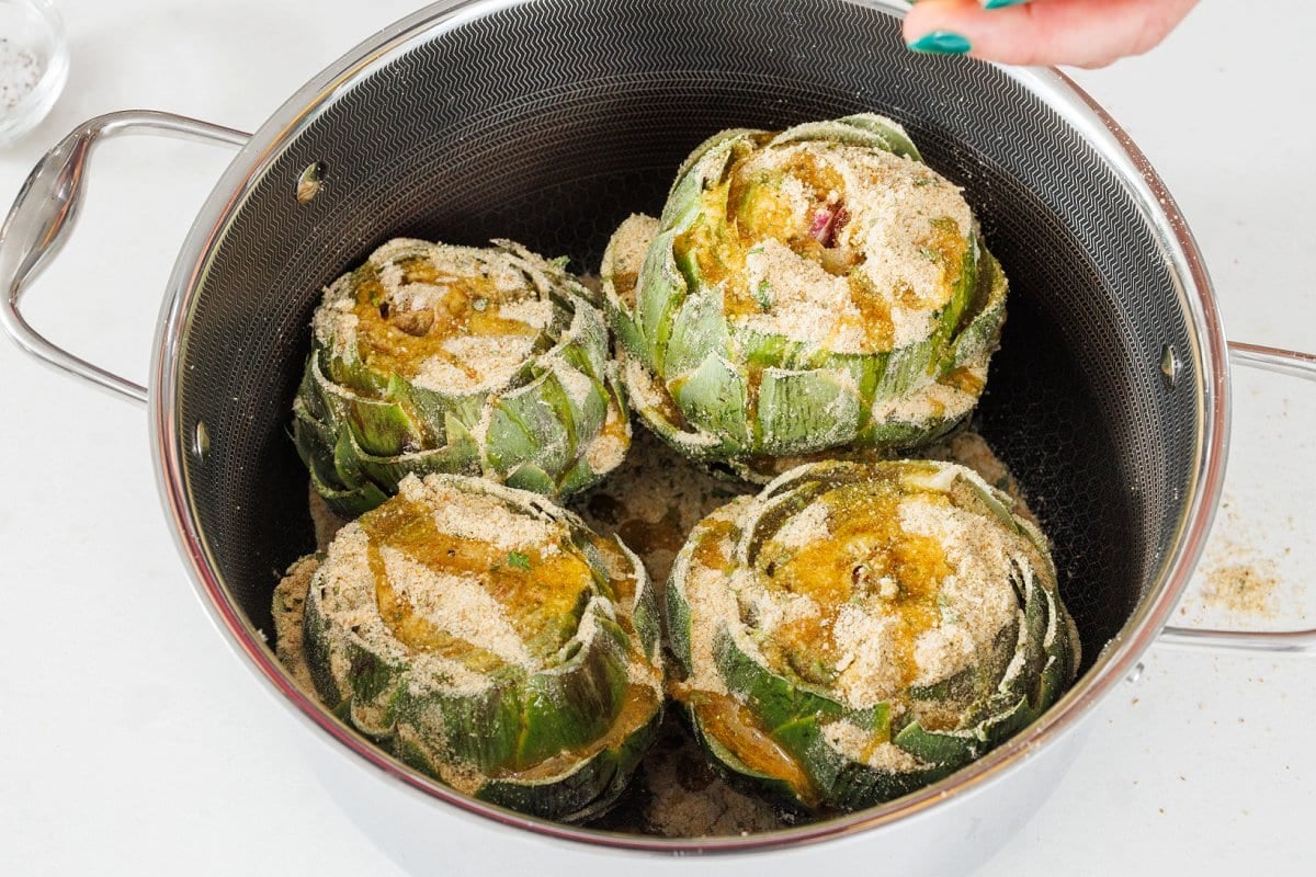• Lemon juice: Bright and acidic flavor that coats the artichokes before they cook.