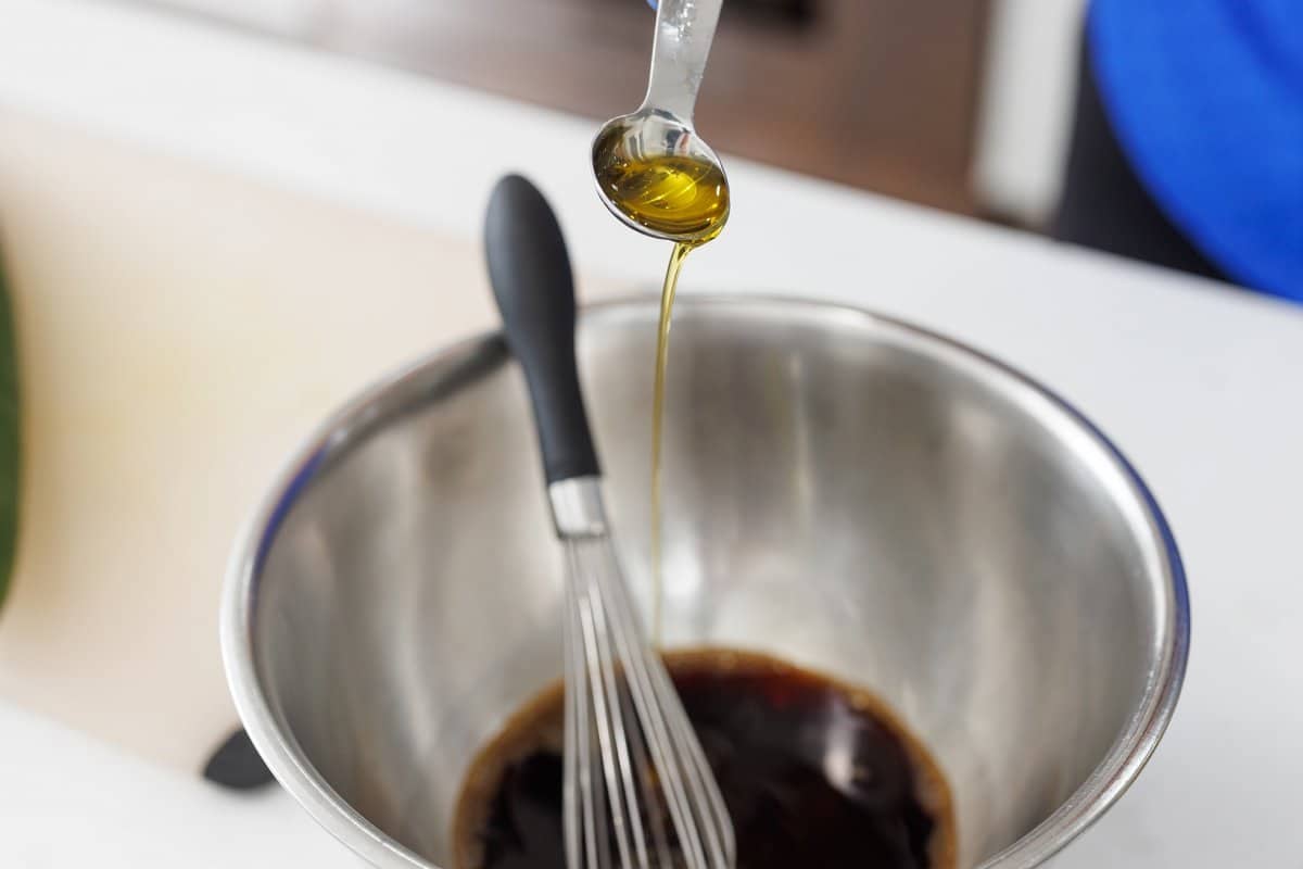 Pour in the sesame oil and then whisk until all ingredients are combined.