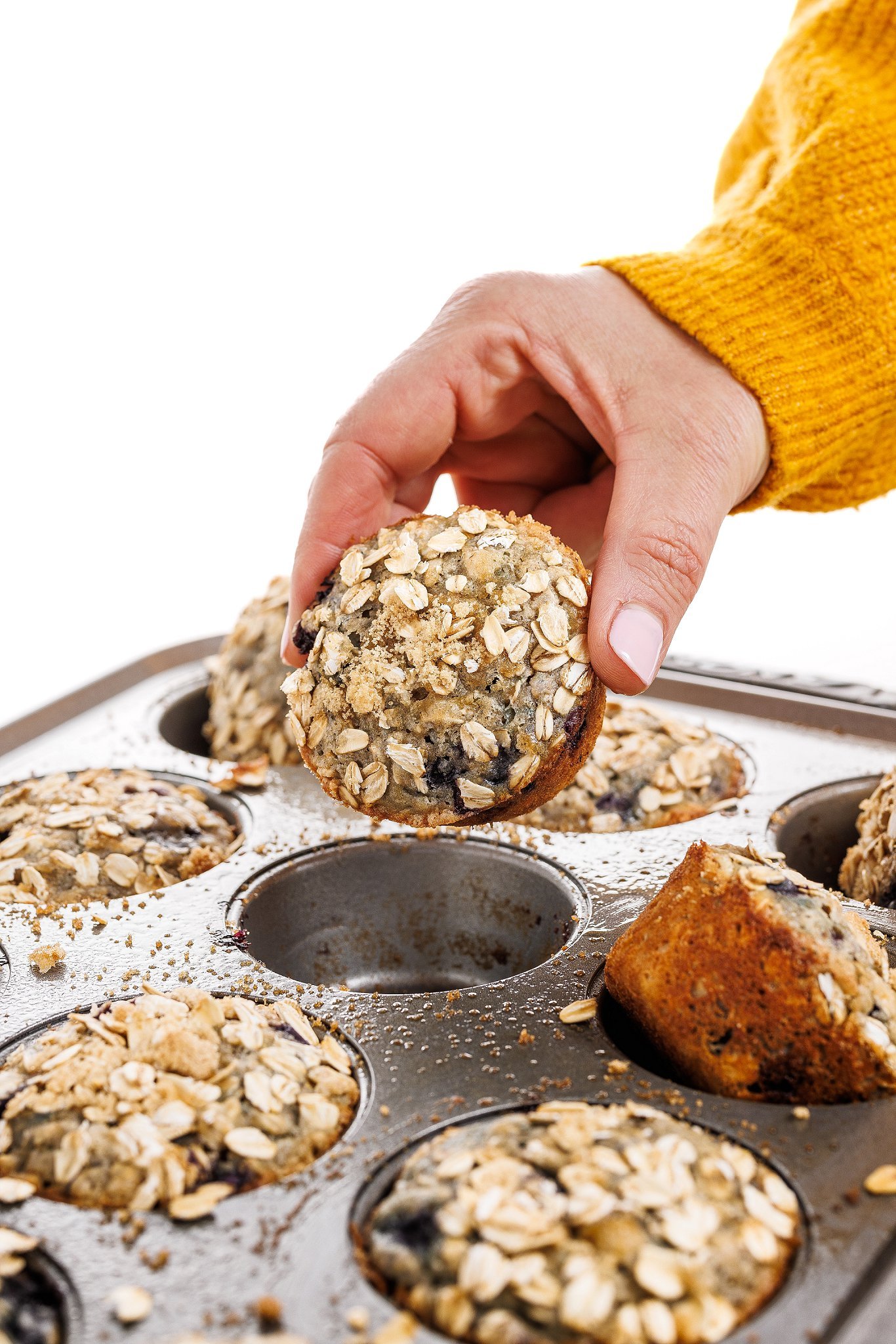 Top each muffin with a bit of the oat and sugar mixture you made in the beginning.