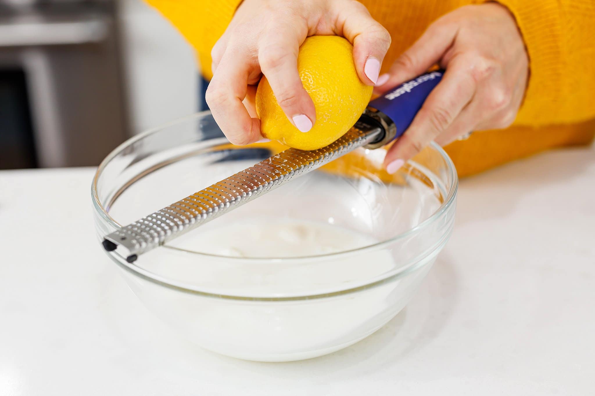 Then use a microplane or grater to zest your lemon.