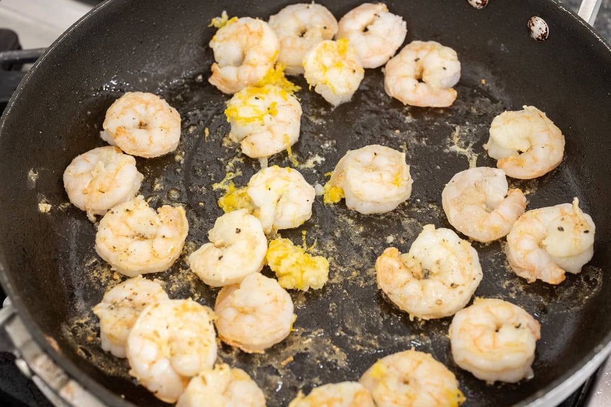 Add the garlic, lemon zest, and lemon juice to the pan and cook until garlic is aromatic.