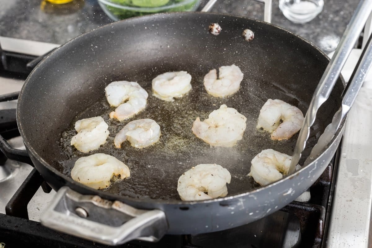 Season shrimp with sea salt and black pepper and cook on each side for a couple minutes until shrimp turns pink.