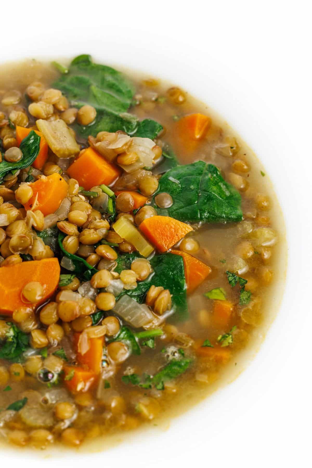 Lemony lentil soup with spinach.
