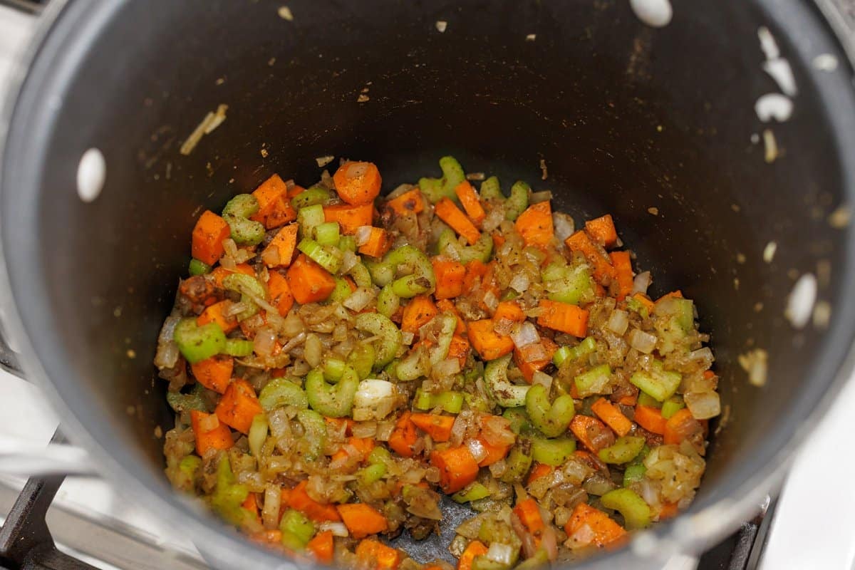 2. Sautee carrots, celery, onions and garlic for 3-6 minutes or until they start to tenderize.