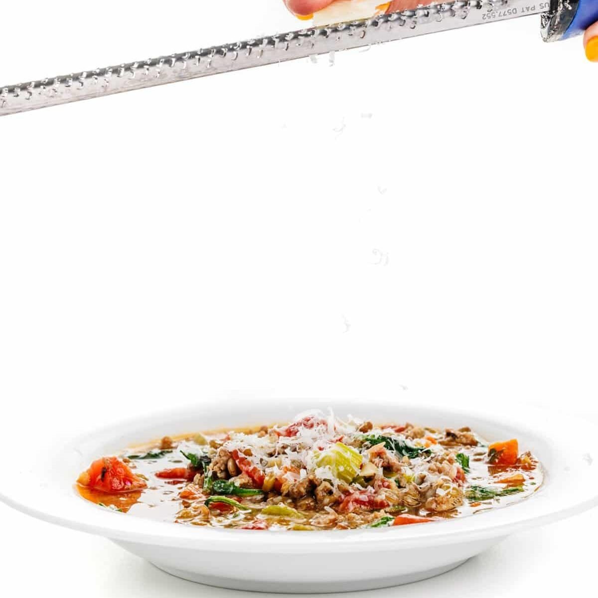 Garnish with freshly grated parmesan cheeses or sriracha sauce, serve, and enjoy your Lentil Soup with Sausage and Spinach!