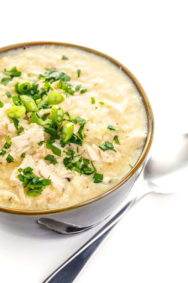 In lieu of traveling to Greece this winter, I decided to create a light and healthy version of avgolemono soup which literally translates to “egg-lemon” soup.